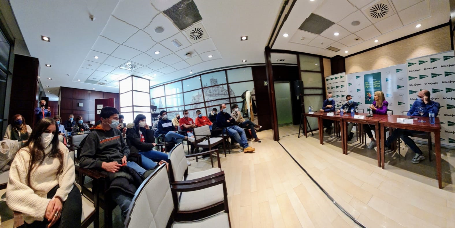 Antes de firmar ejemplares del libro a los asistentes, la tarraconense analizaba el presente y el futuro del fútbol femenino y su relación con el periodismo en España: “La igualdad es imposible en el fútbol. Para llegar a tratar una subida de salarios en el balompié femenino es preciso que antes se profesionalicen los clubes en áreas como el cuerpo técnico, el equipo médico, la forma de viajar… El Club Atlético de Madrid y el Fútbol Club Barcelona emprendían este camino hace un lustro, y ahora están recogiendo los frutos de apostar por el deporte femenino. El debate ha de alejarse de que futbolistas hombres y futbolistas mujeres cobren lo mismo, aunque llama la atención que un jugador de Segunda División pueda cobrar veinte veces más que una jugadora que es campeona de Europa y cuya camiseta no puede comprarse en la tienda del club, que reserva todo para su sección masculina. Alexia Putellas ha llegado a ser premiada como la mejor del mundo por su autoexigencia, no porque tuviera una formación adecuada. ¿Cómo impulsar el fútbol femenino? Soy periodista, por lo que les corresponde a otros dar con la clave, pero hay que educar en igualdad y fomentar que los niños y las niñas compartan plantillas en la base. Eso sí, abogo por crear una norma que obligue a las entidades de Primera División masculina a tener una sección femenina que juegue en sus estadios e insto a los medios de comunicación, sobre todo la televisión pública, que tendría que dar un 50 % de deporte masculino y otro 50 % de femenino, a darle mayor cobertura, pues existe un déficit de visibilidad. Si un joven va a un campo en el que juegan las dos secciones de su equipo y también puede verlas por la tele, sentirá pasión por ambas. El fútbol femenino es un bebé que va en pañales y en su crecimiento hemos de contribuir los implicados, los aficionados y los periodistas”.